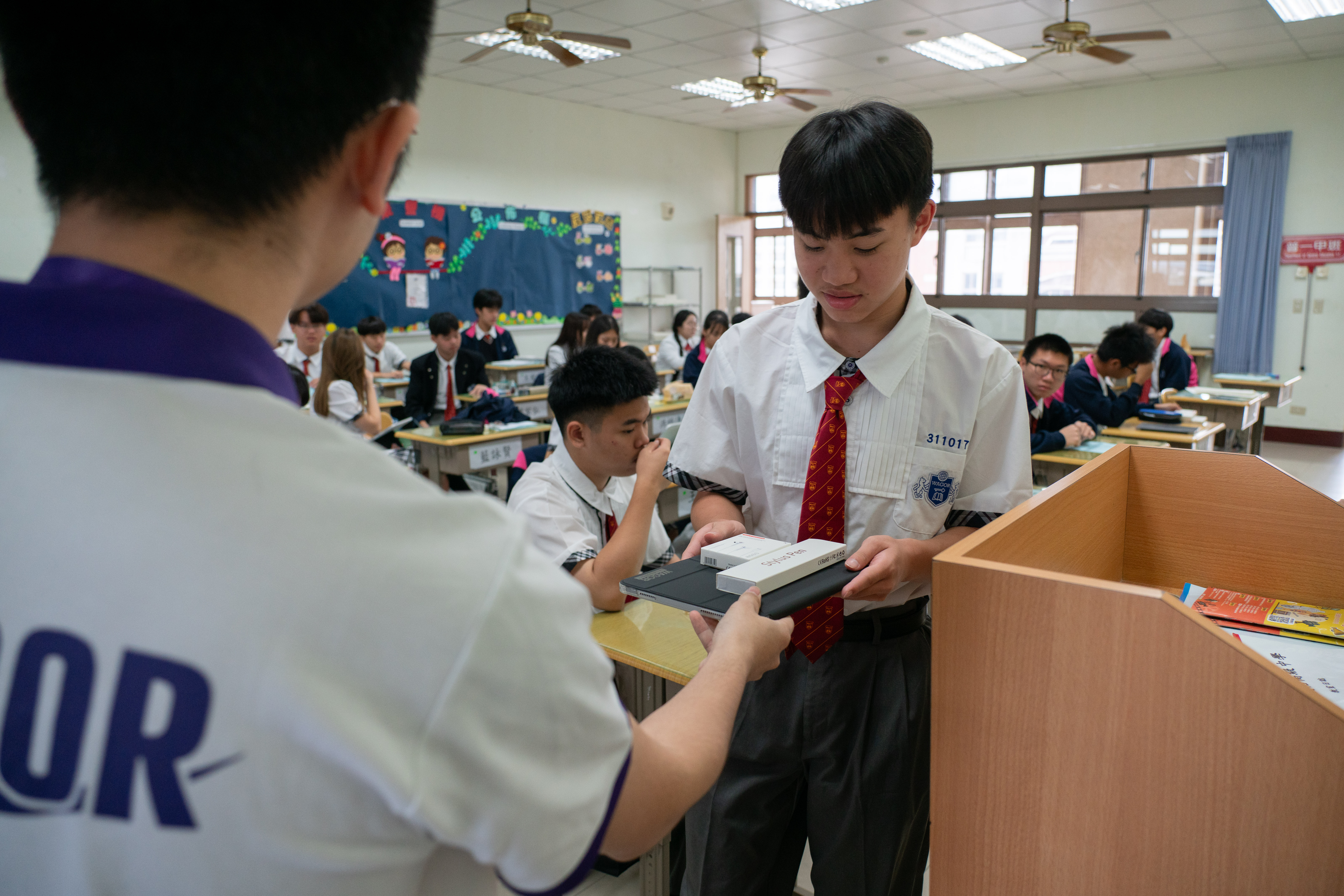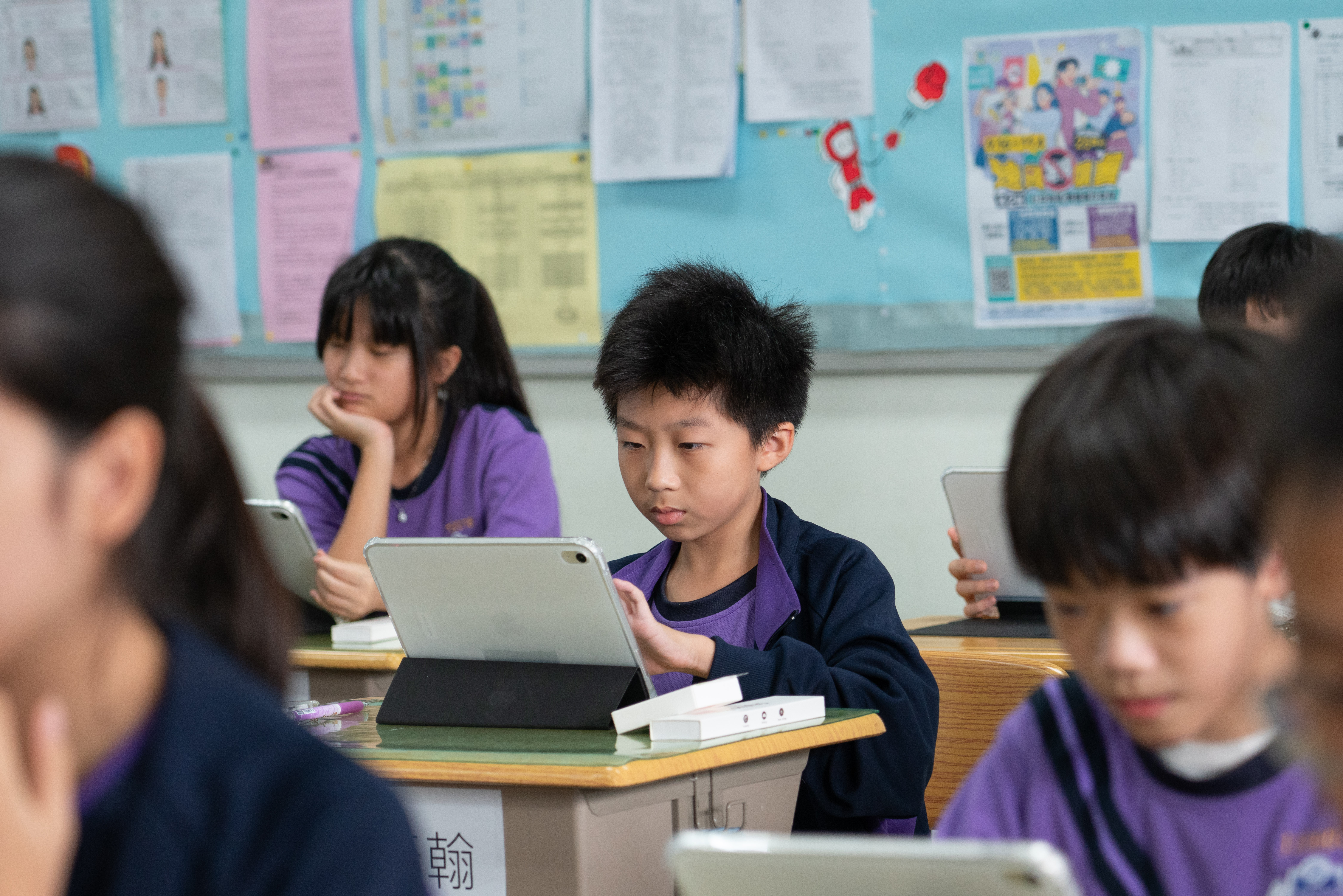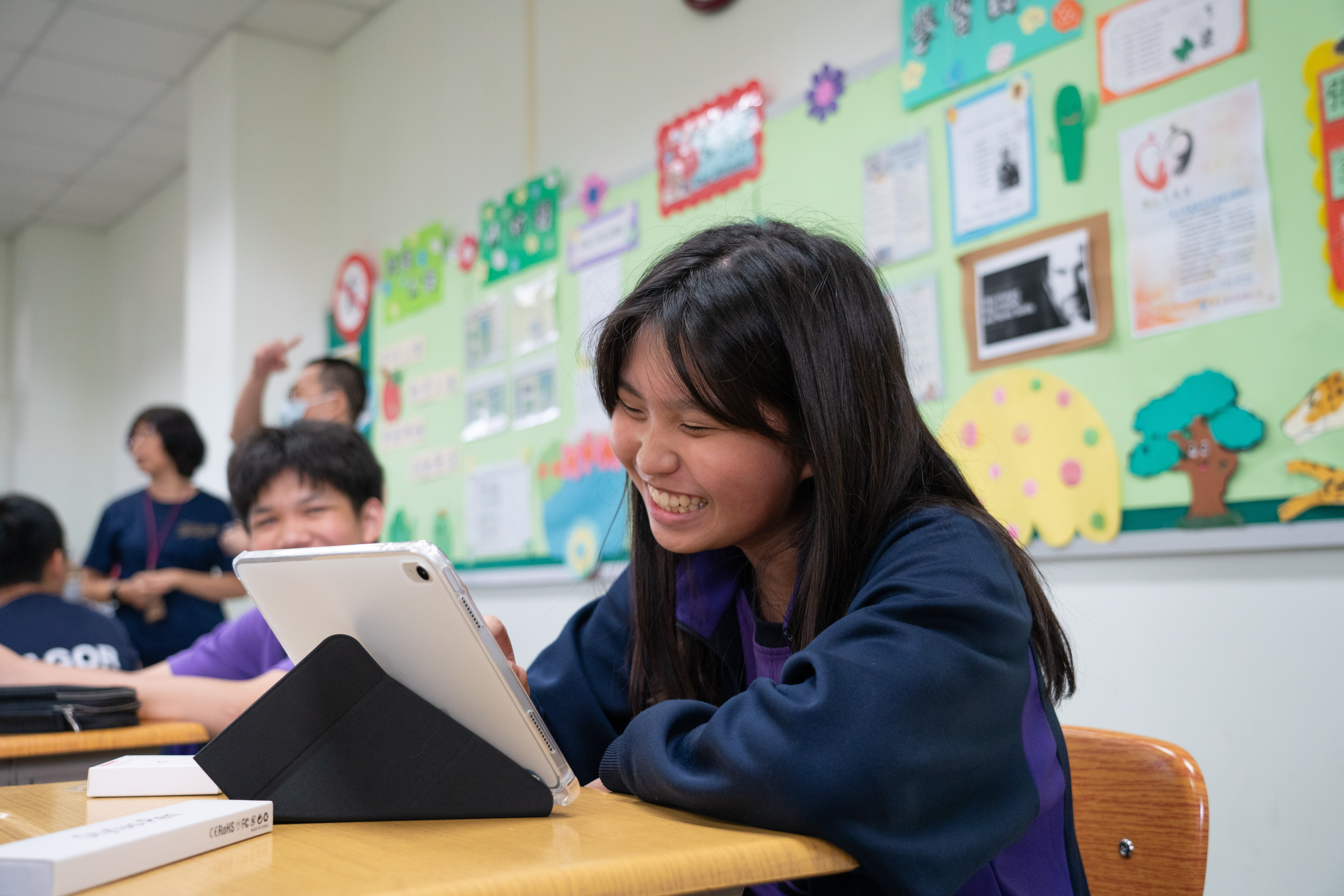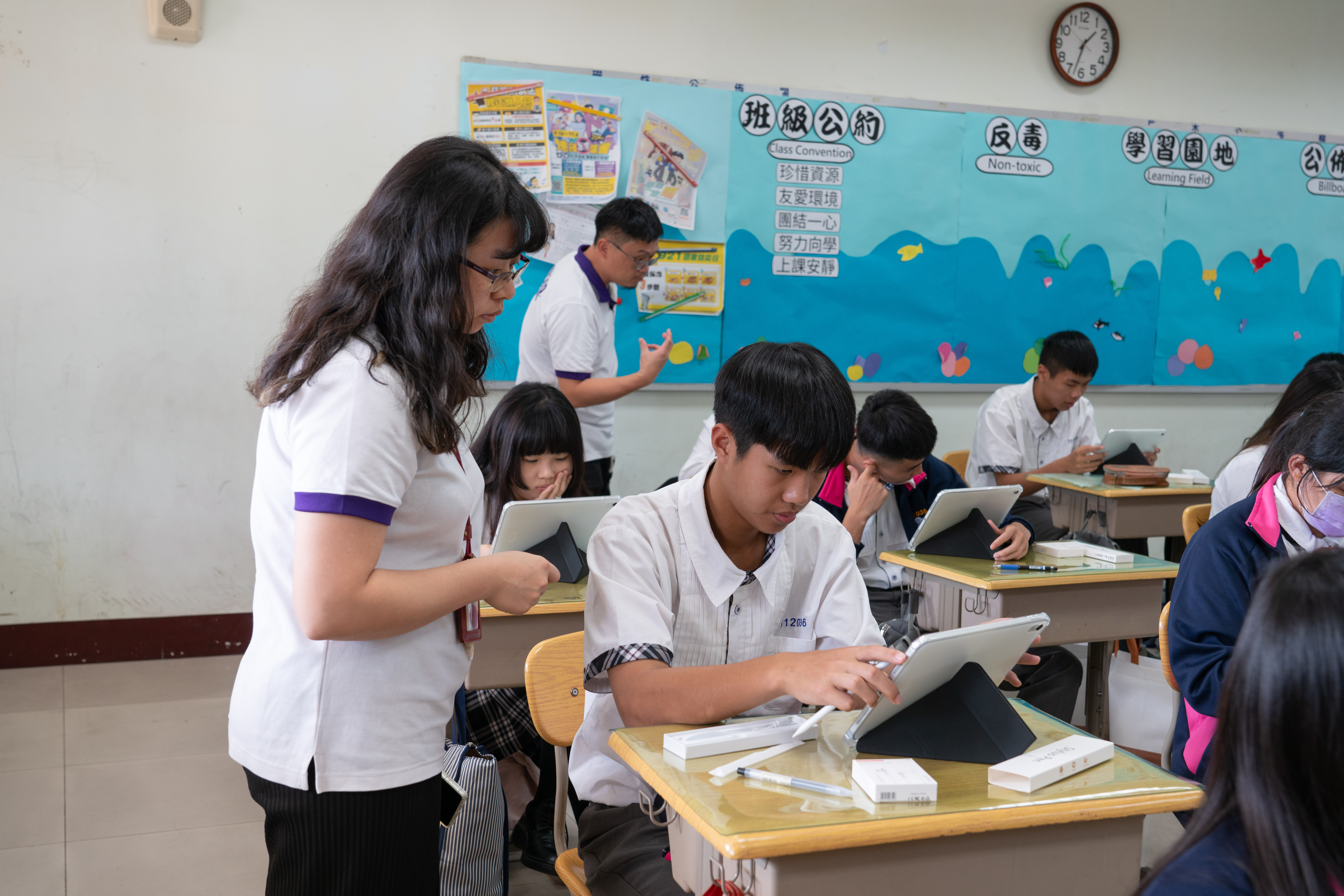 全面e化的教室皆配置觸控螢幕和 iPad充電車,新生拿著專屬的 iPad,在求學過程中紀錄學習的點點滴,而這台 iPad 將陪伴同學們三年,成為最具有紀念價值的畢業禮物。